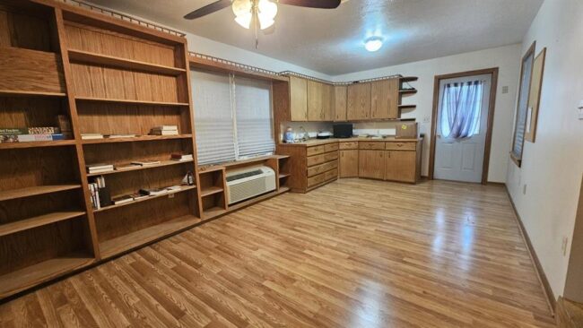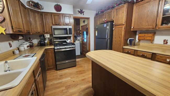 hardwood floors and a spacious kitchen with abundant