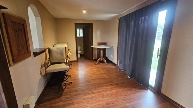 balcony and access to a serene patio, ideal for relaxation.