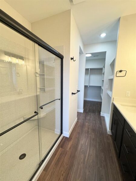 the home along with custom-built cabinets and closets along